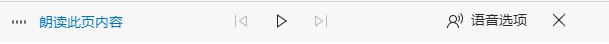这次在 Edge 上碰巧打开的是一个英文的教程,点击 朗读此页内容 按钮之后,浏览器需要加载一会,然后原本的 PDF 专用工具栏会变成一个简易的音乐播放器的样子,大概长这样: