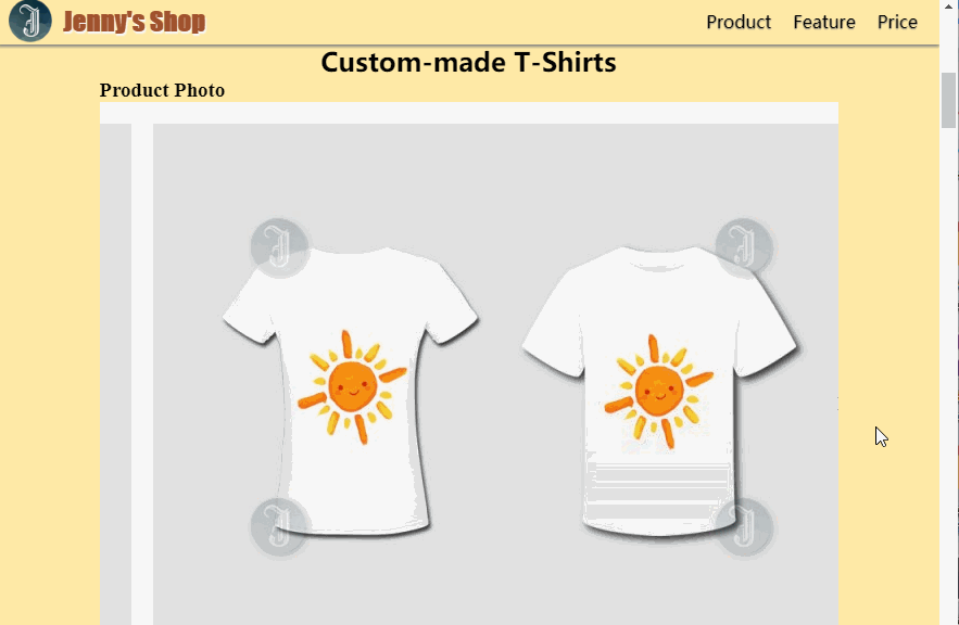 产品是我自己想出来的订制T恤衫,6张产品图全是我自己用Photoshop做的,还打上了我的网站logo水印,算是整个页面上最有技术含量的。